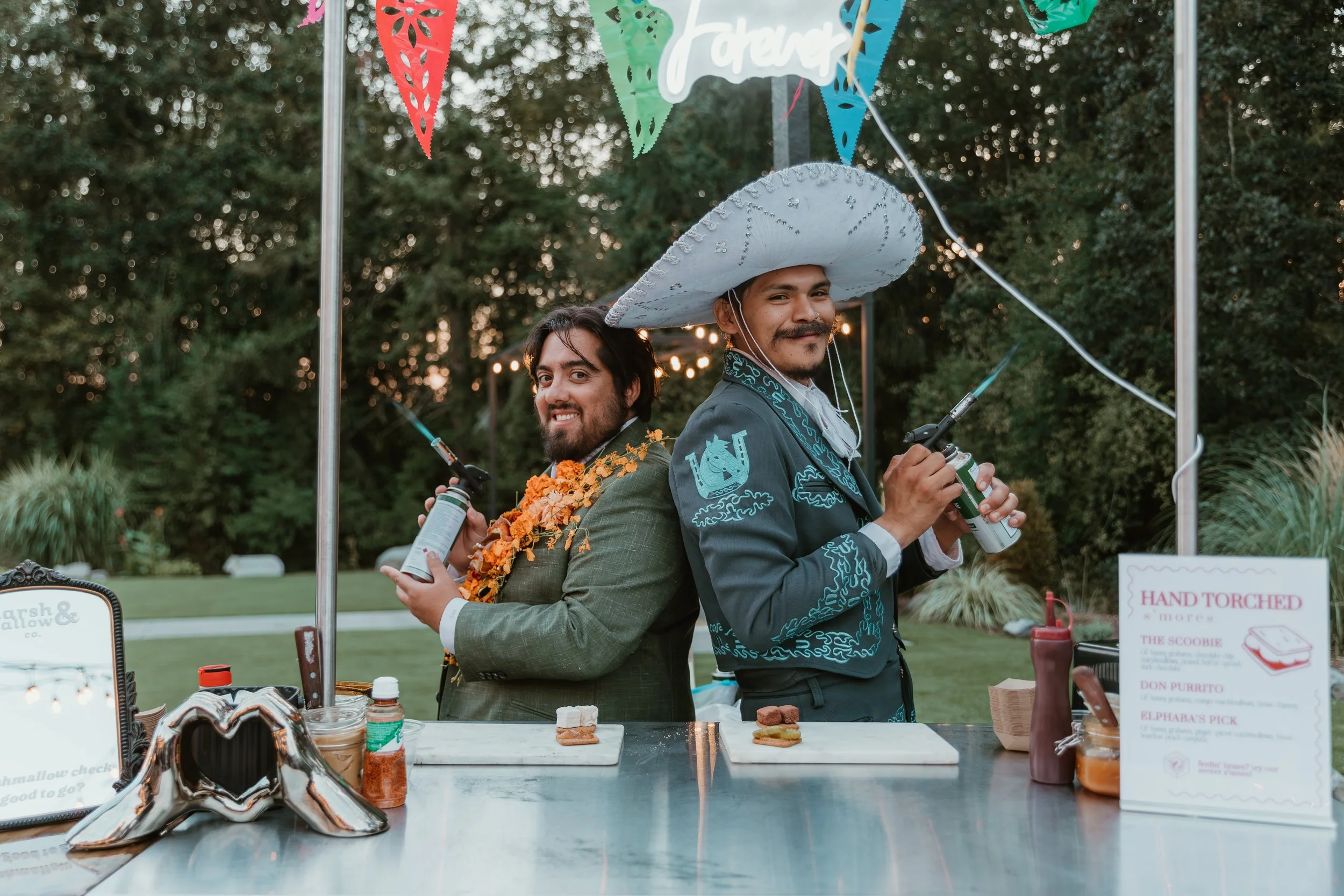 After our former employer dropped us and their clients, we decided to save the concept and make it our own! We started M&MC in fall of 2024 to fill the gap for high-quality s’mores in the Pacific Northwest, backed by nearly 4 years of s’mores catering experience. As a newly married couple, we know how special it is to craft a menu that feels personal, and we love helping clients do the same with our toasted treats.