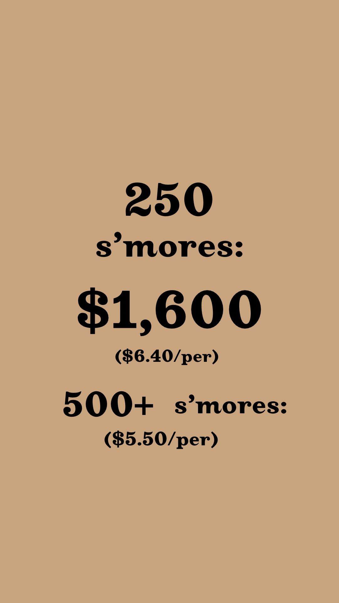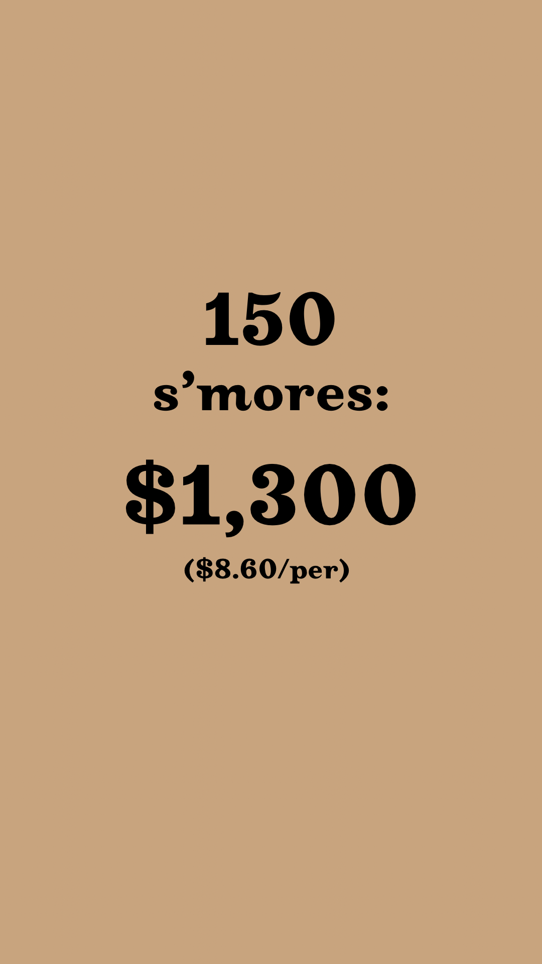 We recommend booking roughly 80% of your guest total for s’mores.