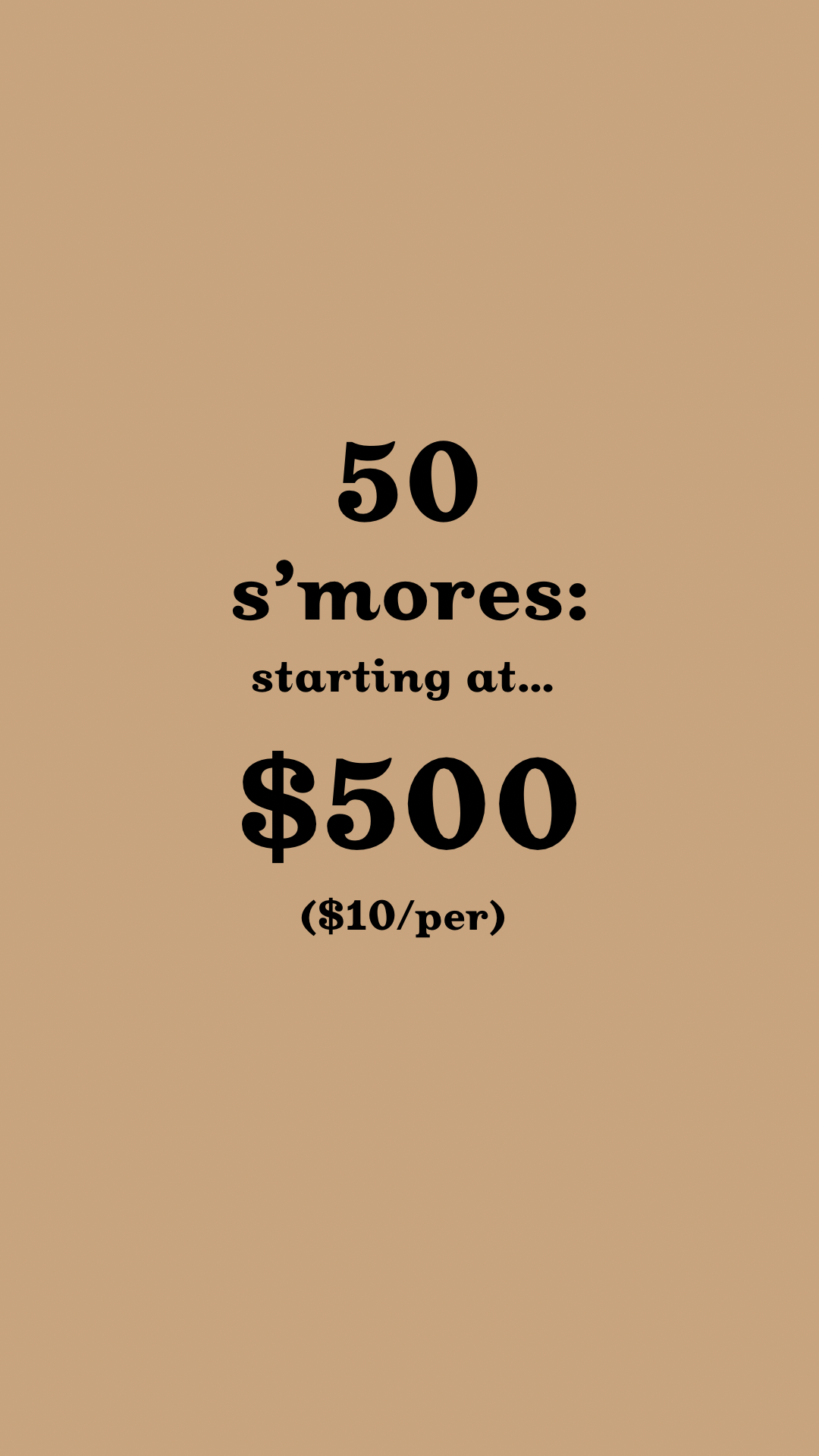 It’s time for our favorite part, picking out your menu! If you don’t need us within 3 weeks you’ve got time for a tasting, and we can go custom on flavors! If you see a s’more on our Instagram stories that isn’t listed online, just ask! Freddie is a chef by degree and can make some truly amazing s’mores.