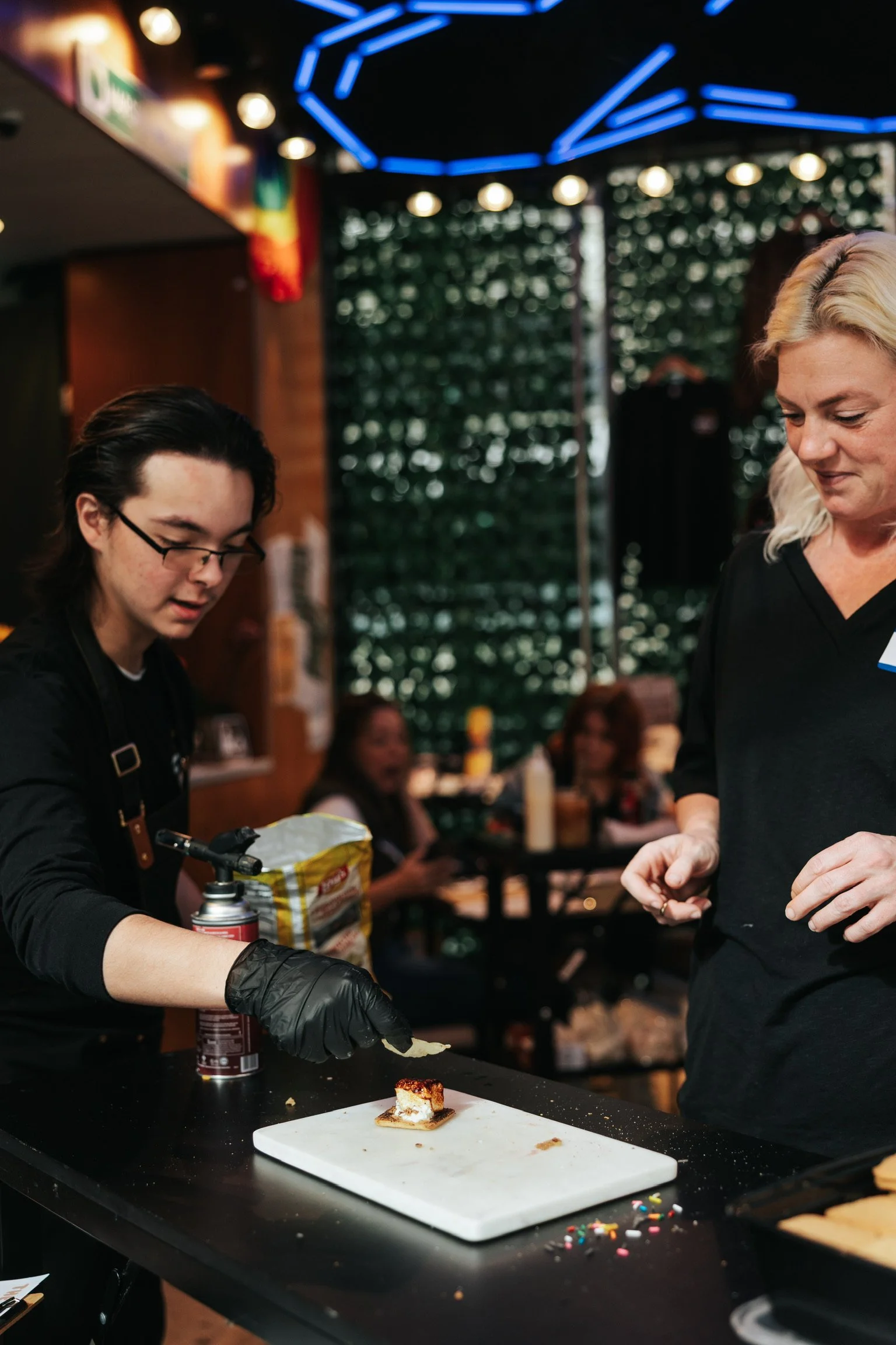 ❋ Intentional StructureAt Taste Kitchen, the magic comes from the group. Small teams brainstorm, taste, and experiment together, cheering each other on as wild flavor combinations come to life. Laughter, surprises, and a little friendly competition fuel the room, as teams compare creations and celebrate the unexpected hits. Attendees can even roast their own s’more!